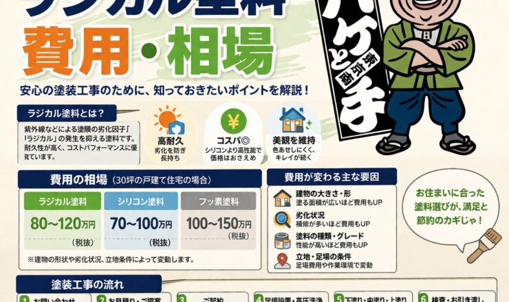 府中市で外壁塗装・外壁塗り替えを検討している方向けに、ラジカル塗料の特長と外壁への効果、費用対効果を分かりやすく解説します。府中市の外壁施工における...